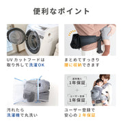 UVカット率98.1%!通気性の良い着脱可能メッシュフードで眠った赤ちゃんの頭を優しくホールド。
