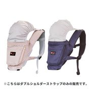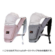 別売り「 新生児パッド2way 」をあわせて使うと、生後1か月からの縦抱っこが可能です。また、シングルショルダーヒップシートが腰すわりから使えるのに対し、ダブルショルダーヒップシートは首すわりからお使いいただけます。