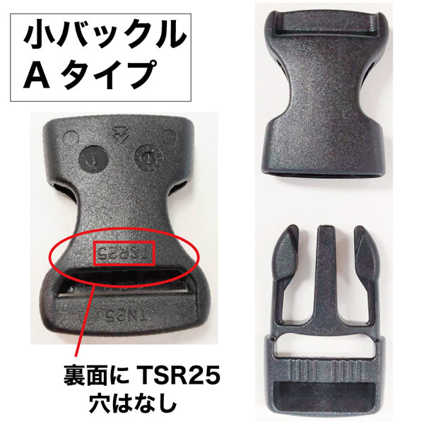 napnap製品に使用されている小さいバックル(調節バックル、肩バックル)になります。踏んづけてしまったり、ドアに挟んで割れてしまったときなどにお使いください。
