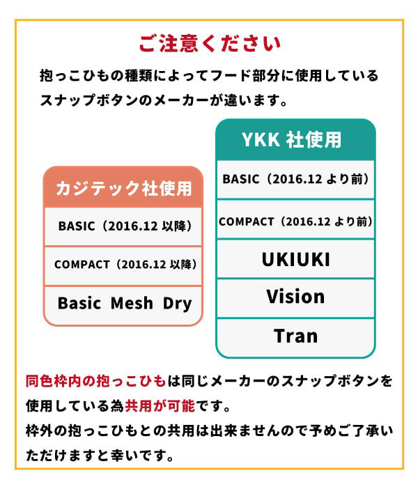 ふたご抱っこひも以外のナップナップ全シリーズに対応しています。