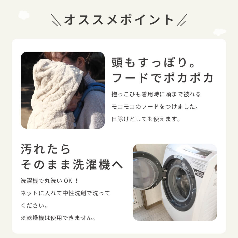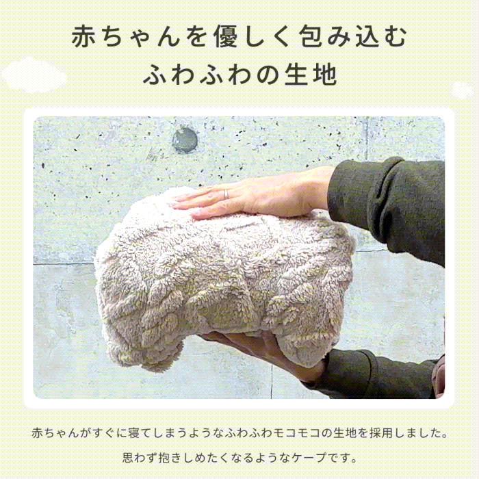 赤ちゃんがすぐに寝てしまうようなふわふわモコモコの生地を採用しました。
