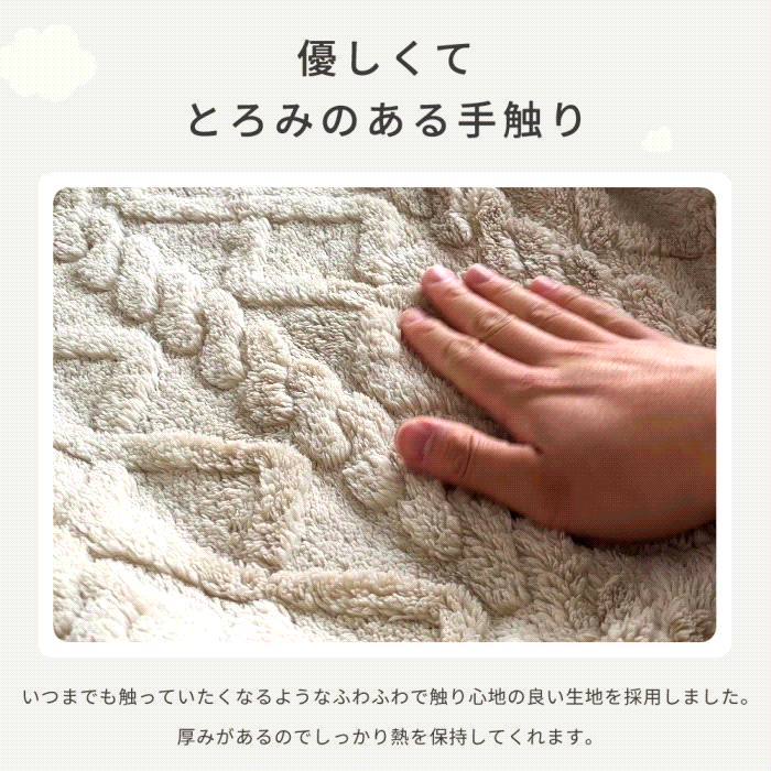 いつまでも触っていたくなるような、ふわふわで触り心地の良い生地を使っています。