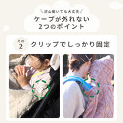 ベビーカーのフレームや抱っこひもの肩紐に巻き付けるタイプなので、メーカー問わずお使いいただけます。